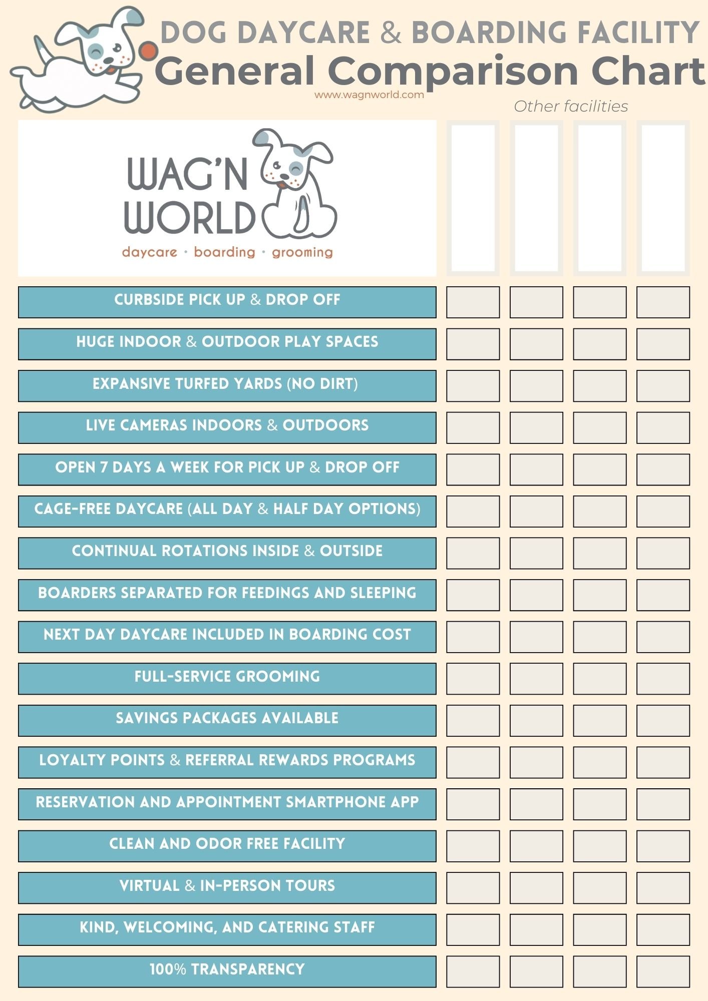 Use both comparison tools when visiting other dog daycare and boarding facilities.
