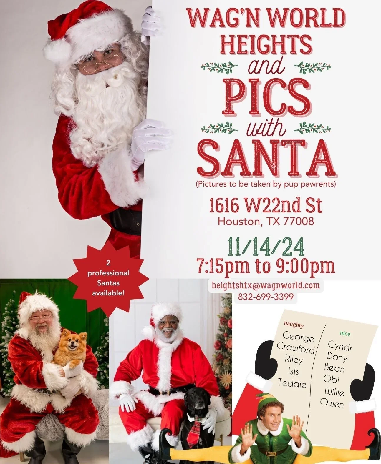 /Please join us on November 14th for our Howliday Party and Santa Pics! There will be snacks, light bites, giveaways, and 2 professional Santas to take pictures with. The event will take place at our new Heights location. We look forward to seeing you soon!